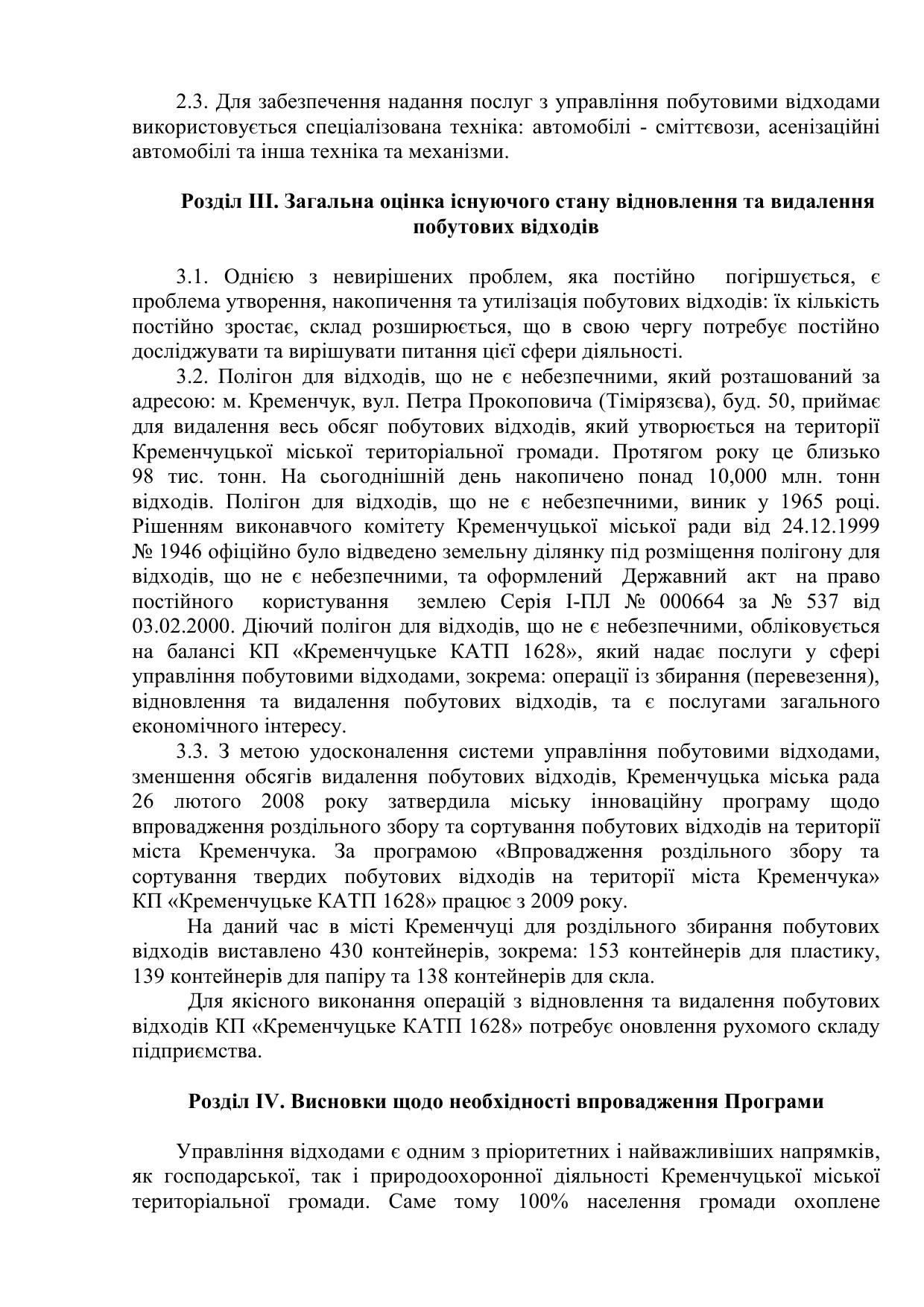 комунального підприємства «Кременчуцьке комунальне автотранспортне підприємство 1628» Кременчуцької міської ради Кременчуцького району Полтавської області у сфері управління побутовими відходами