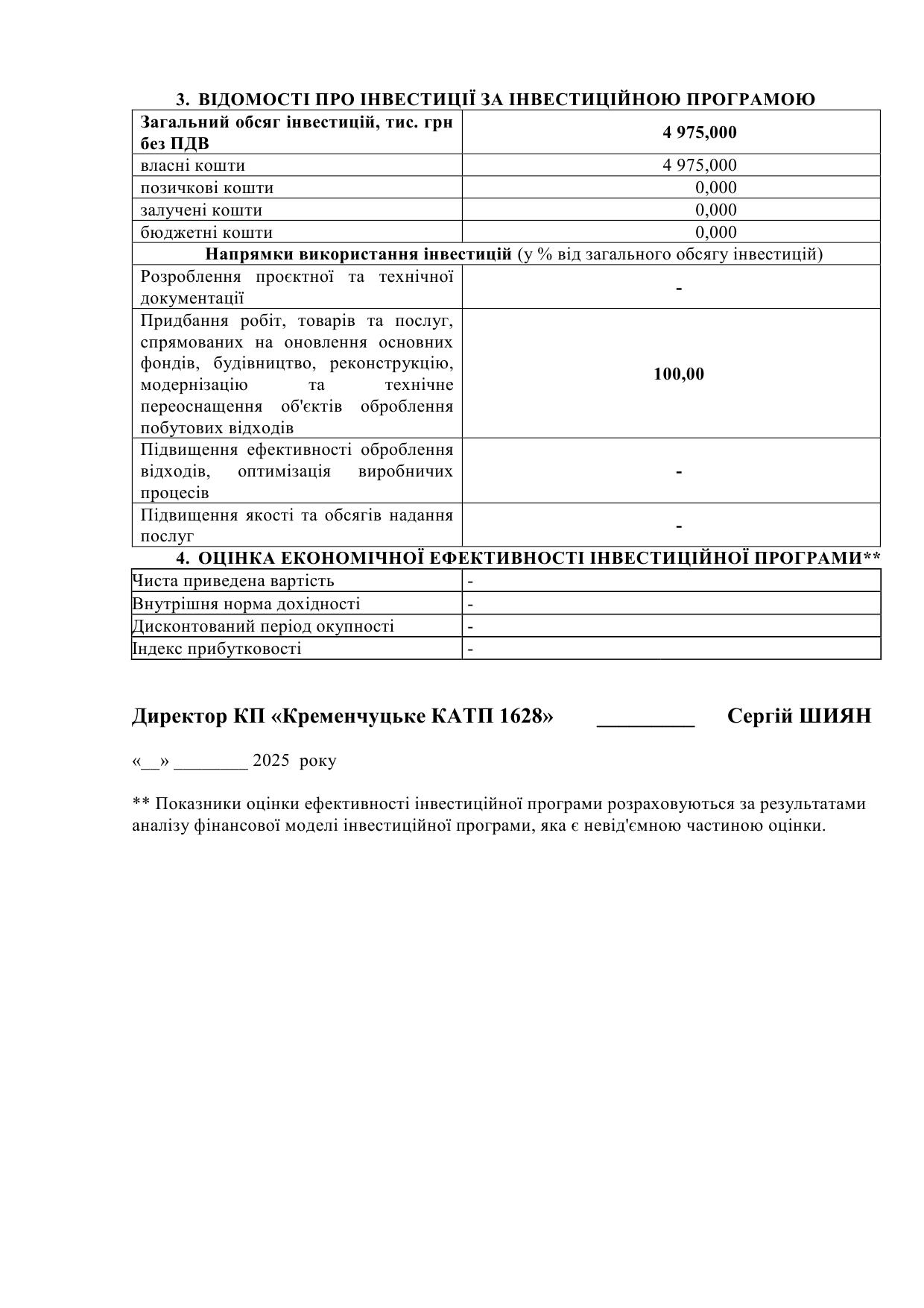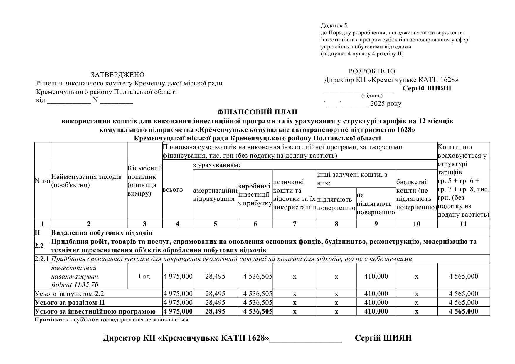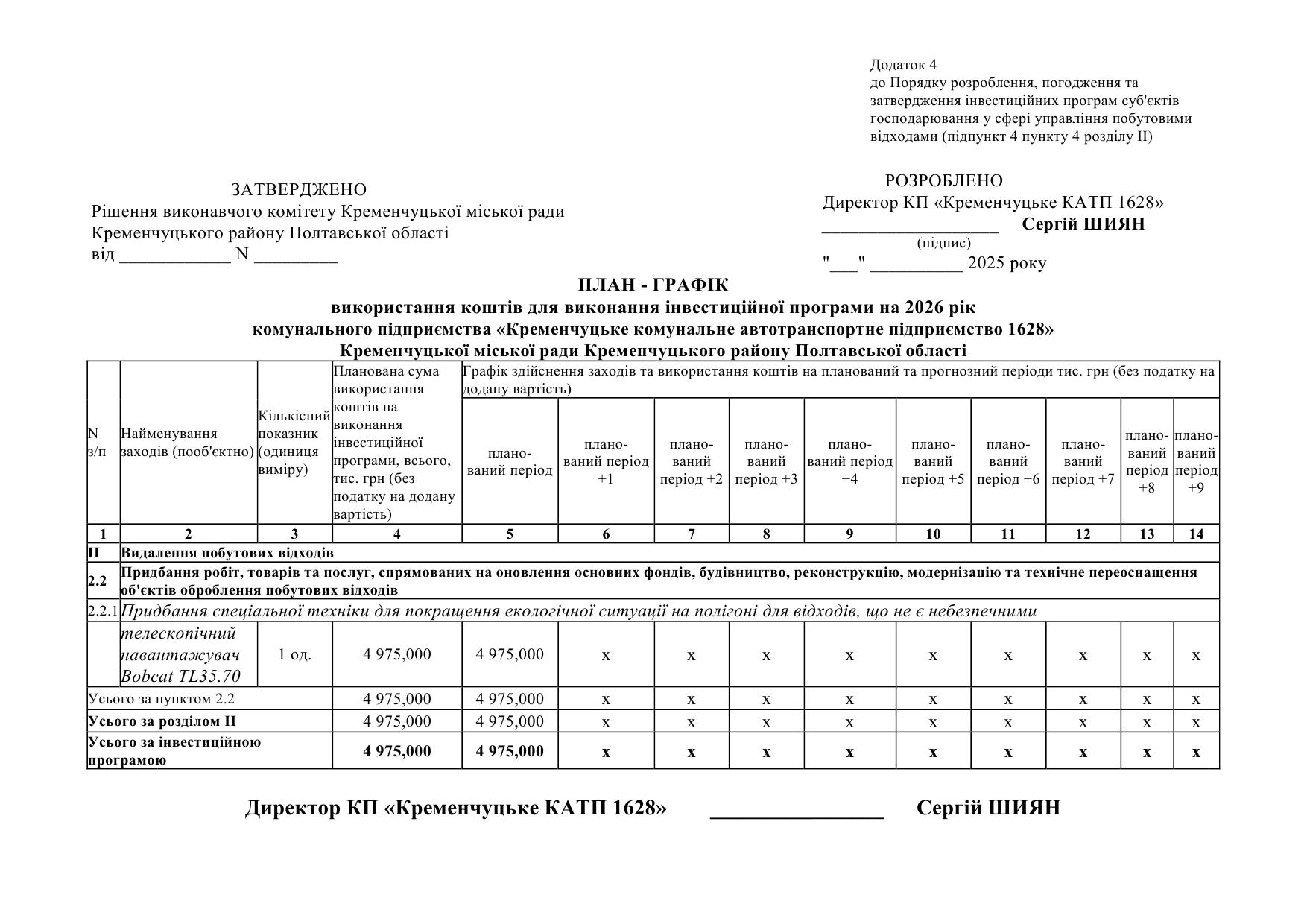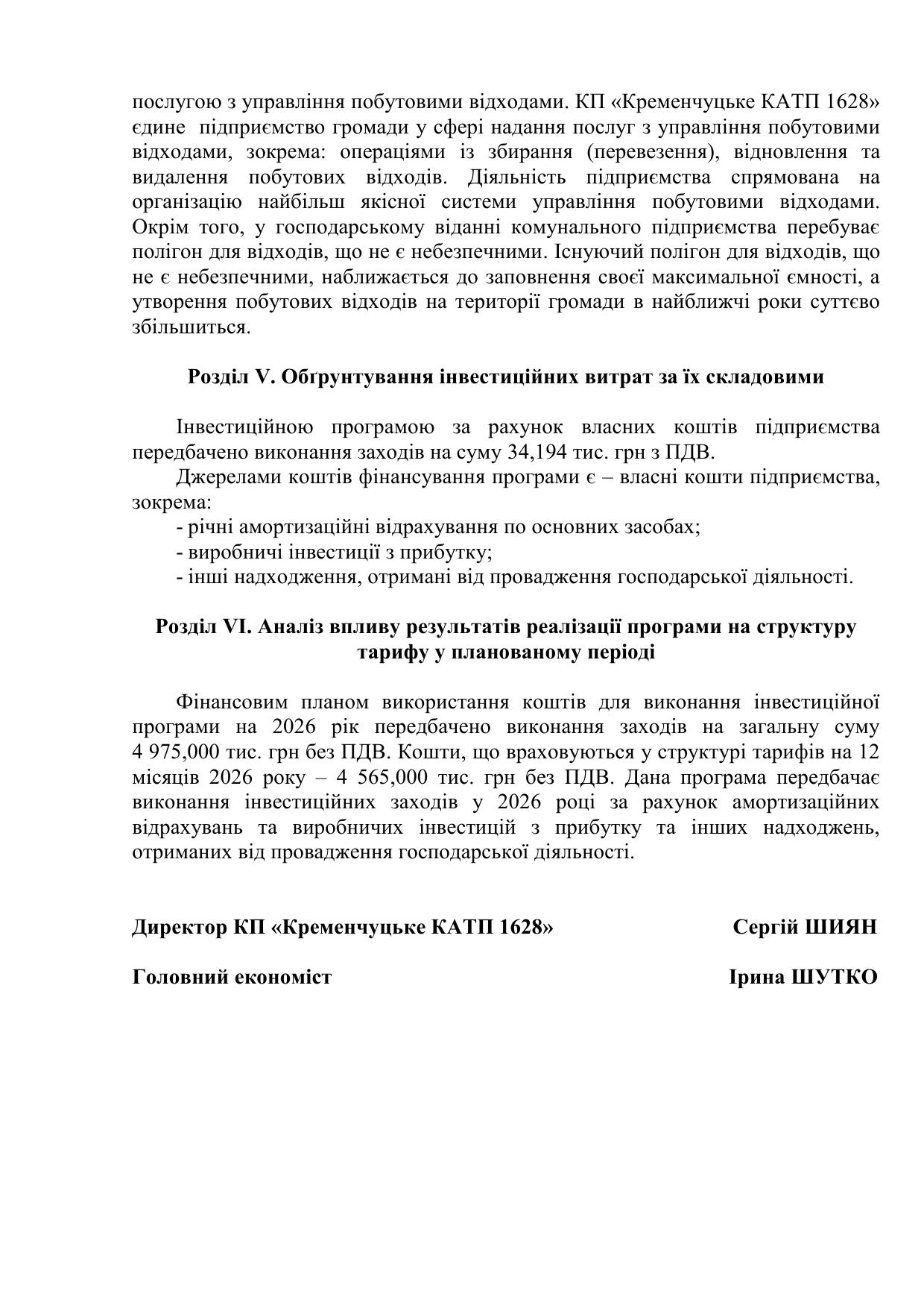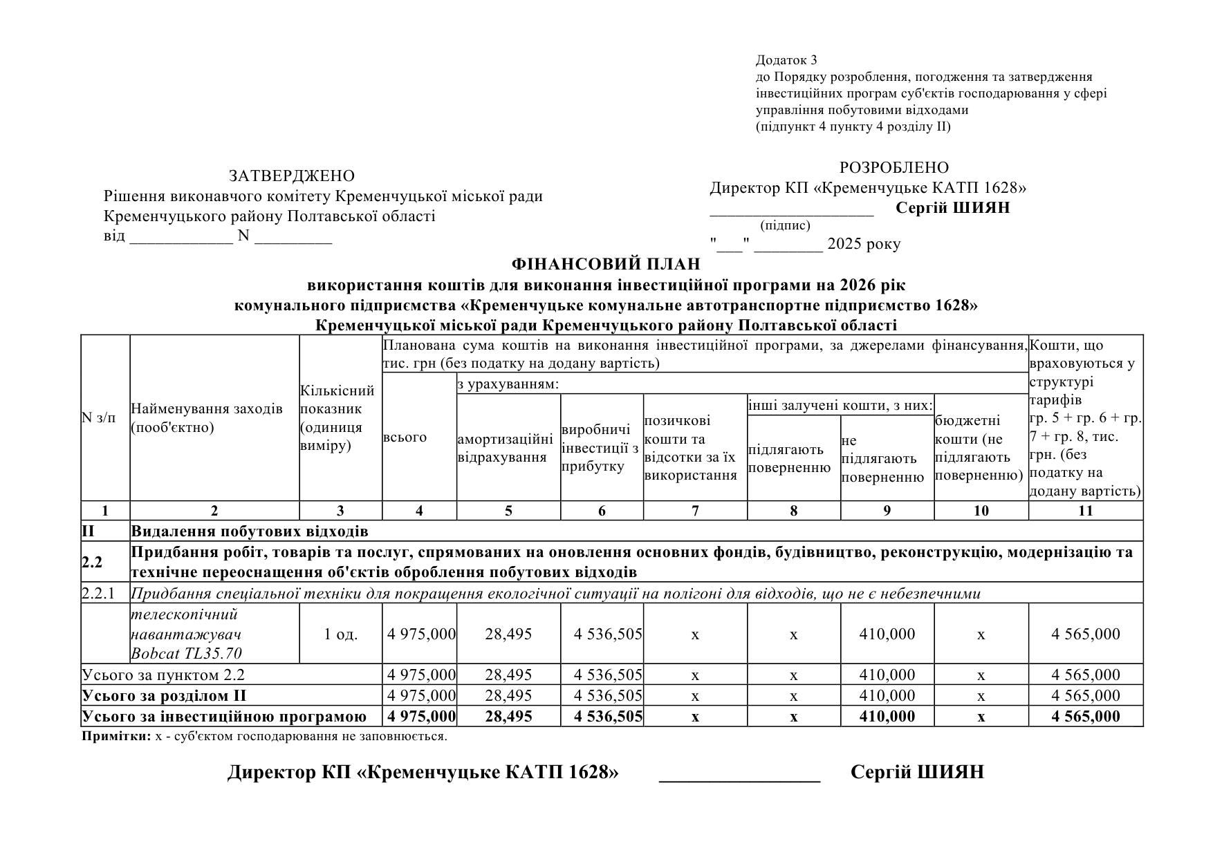 Проєкт інвестиційной програми КП "Кременчуцьке КАТП 1628" на 2026 рік