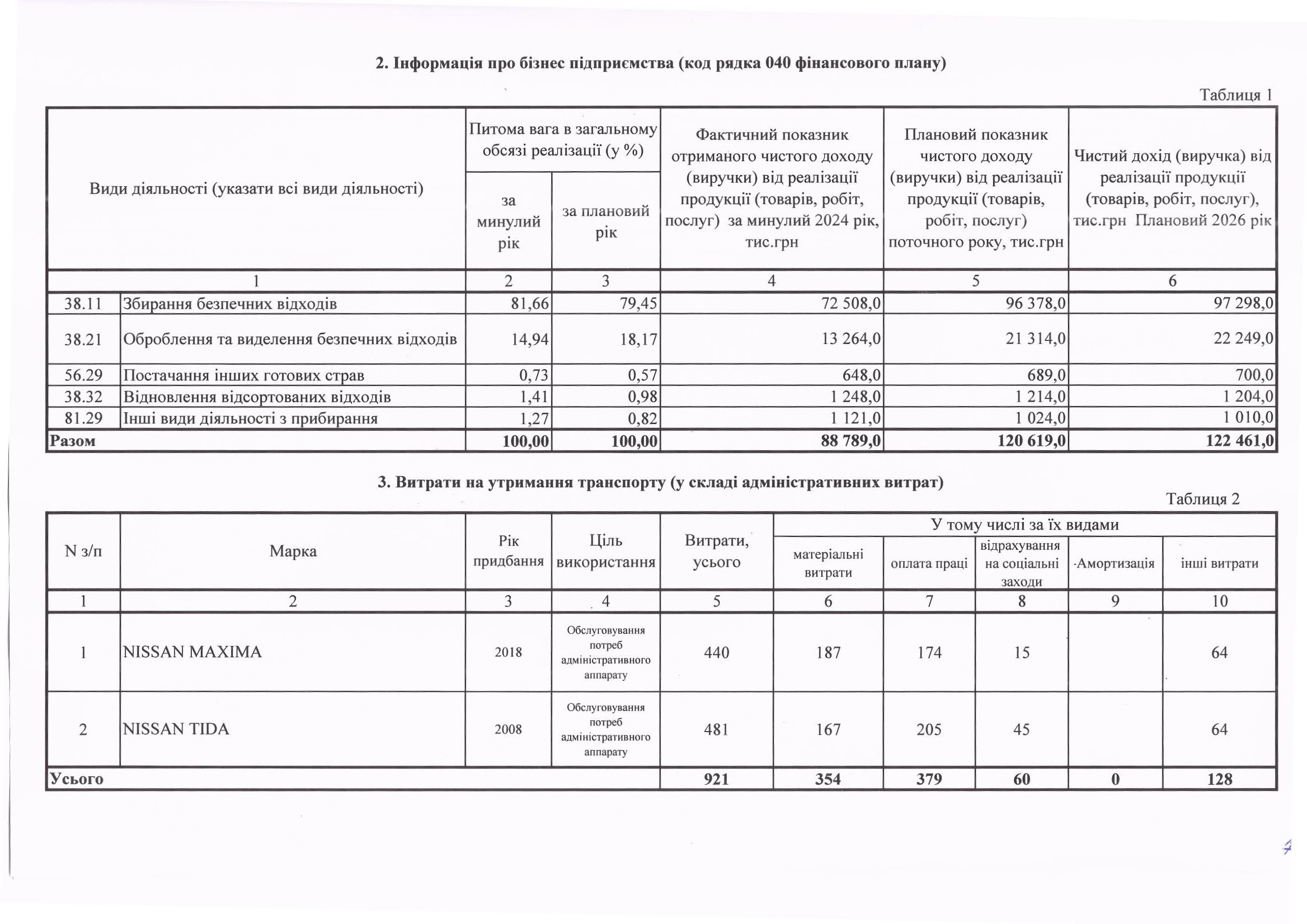 ФІНАНСОВИЙ ПЛАН ПІДПРИЄМСТВА НА 2025 РІК (зі змінами)