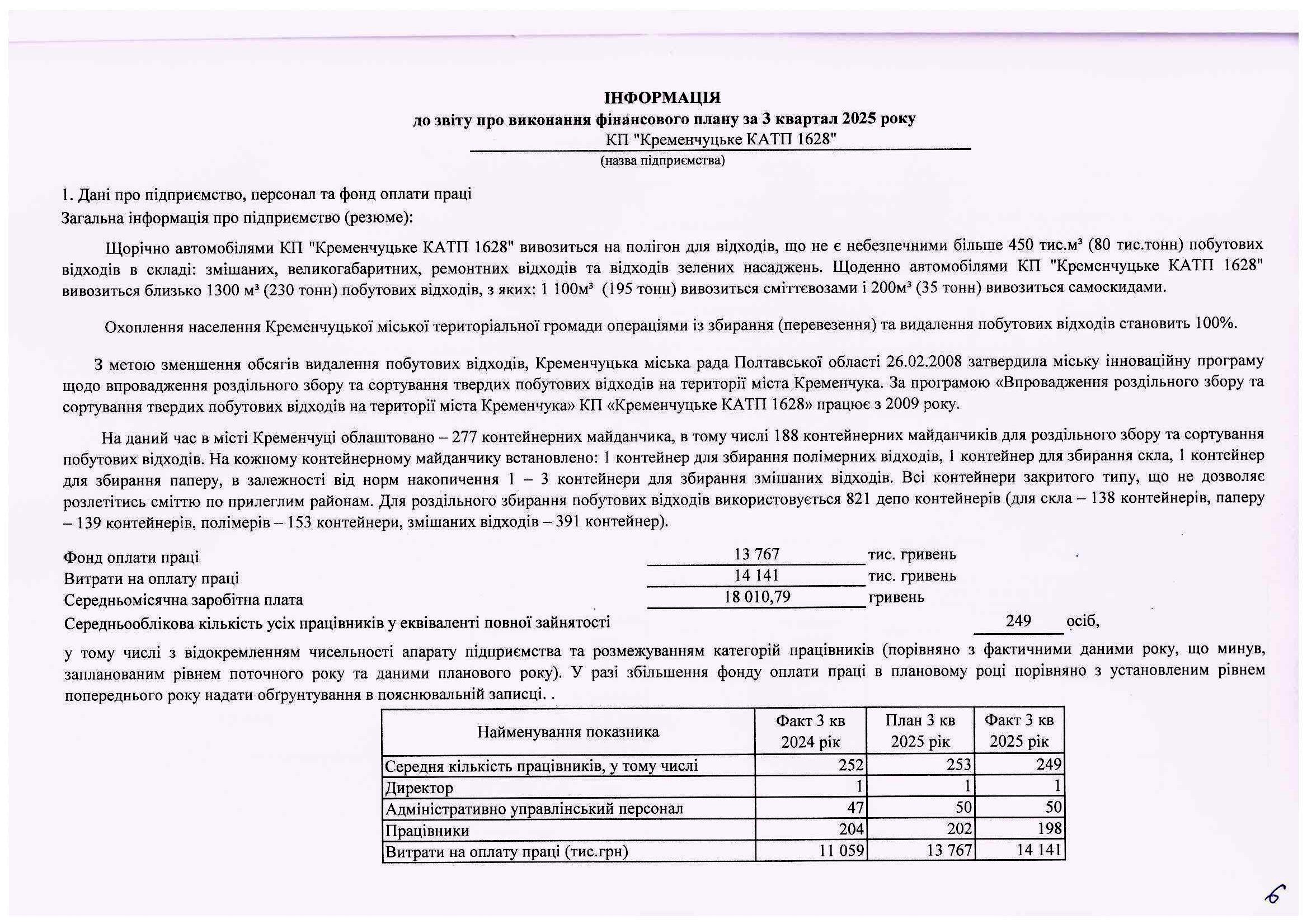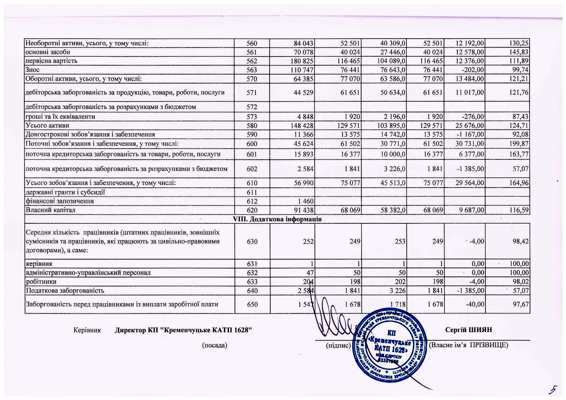 Звіт про виконання фінплану за 2024 рік КП Кременчуцьке КАТП 1628 -